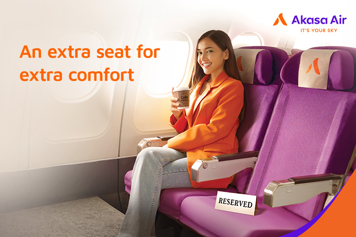 Akasa Air, India’s most dependable airline, recently introduced its latest  offering, ‘Extra Seat’ enabling a passenger to book an adjacent seat for added privacy and comfort.  Passengers can opt for the Extra Seat add-on service on www.akasaair.com, the Akasa Air app, by  calling the 24×7 Akasa Care Centre or at the airport ticketing counter.
