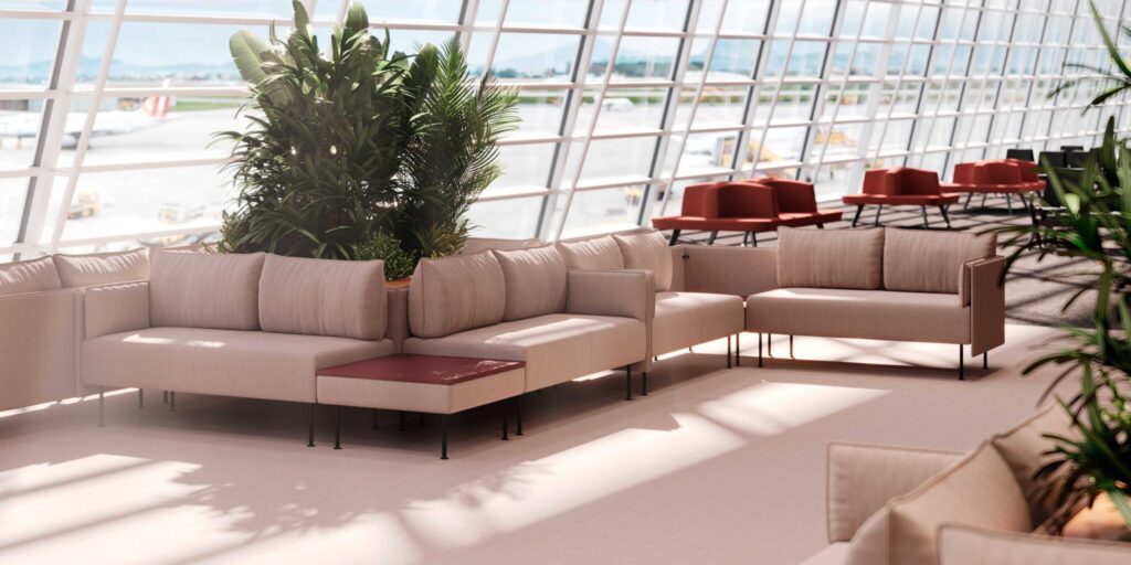Kusch+Co’s soft seating options are designed to meet the needs of the most sophisticated interior concepts. Their modular furniture can be configured to create tailored spaces, with sofas, armchairs, and islands forming attractive focal points that enhance the overall aesthetic of airport lounges.