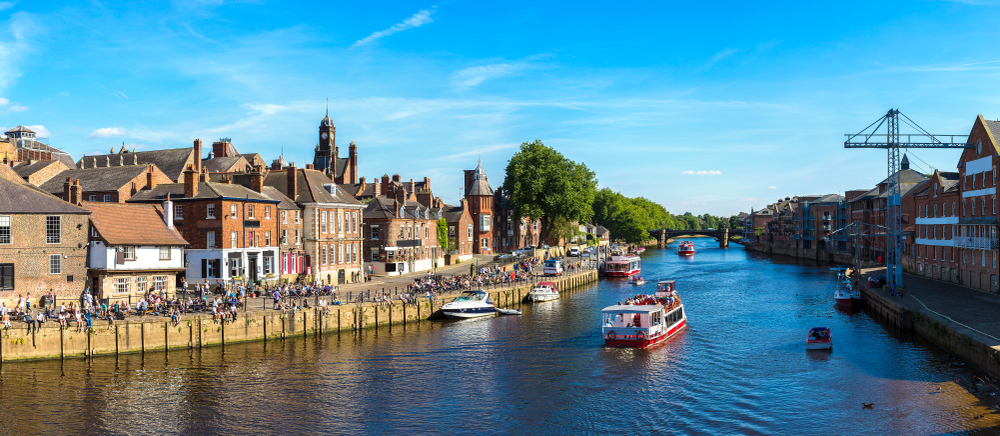 Panorama of River Ouse in York in North Yorkshire in a beautiful summer day, England, United Kingdom