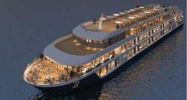 The ship will feature 33 deluxe cabins and two “VIP suites” all with en-suite bathrooms and private balconies.